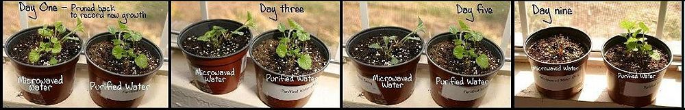 Su soğutulduktan sonra tamamen aynı iki bitki bu ayrı sularla sulandı,amaç normal kaynan suyla beslenen bitki ile mikrodalgada ısıtılan suyla beslenen bitkinin büyümesi arasında fark olup olmayacağını görmekti.