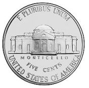 ABD’ye ait, 5 cent değerindeki bozuk para. 5 gr ağırlığında olan bu bozuk paraya Nickel deniyor.