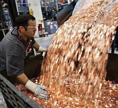 • İnternette bu habere aitmiş gibi pek sevilerek kullanılan fotoğraf ise 2007 yılında Bloomberg tarafından  yazılmış bir makaleye ait. Haberde, Amerika darphanesinin, 1984 yılında önce üretilen sentleri eritip yeniden para basacağından bahsediliyor. (Google resim arama fonksiyonu sayesinde bu resme ait haberi bulmam yaklaşık bir dakikamı aldı.) Daha da eğlencelisi, bu resimdeki bozuk paralar 5 cent’lik olan nickel değil, 1 cent değerindeki peniler.