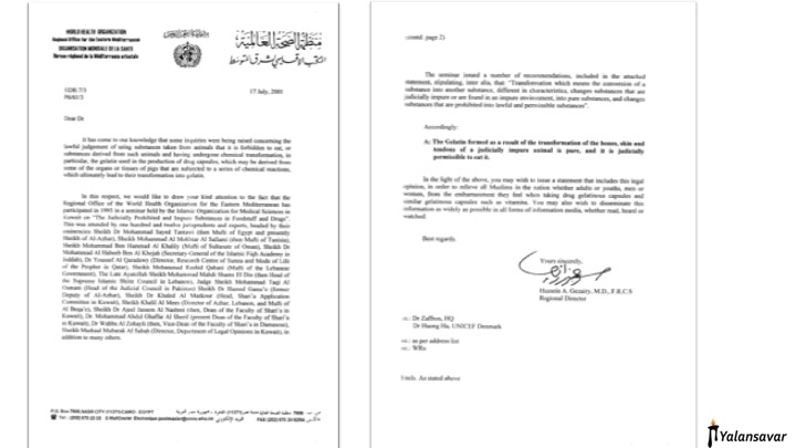 1995 yılında Mısır’da yüzden fazla katılımcı ile gerçekleşen Dünya İslami Tıp Bilimleri Örgütü (ISOM) toplantısında, katılımcı ülkelerin dini temsilcileri ortak bir bildiri ile aşılarda ve ilaçlarda kullanılan domuz jelatinin ileri derece transformasyona uğrayarak domuzluk özelliğini kaybettiğini, ve din açısından bu jelatini içeren aşıları yaptırmanın sakıncalı olmadığı konusunda karar birliğine vararak ortak bir bildiriye imza attılar. 18